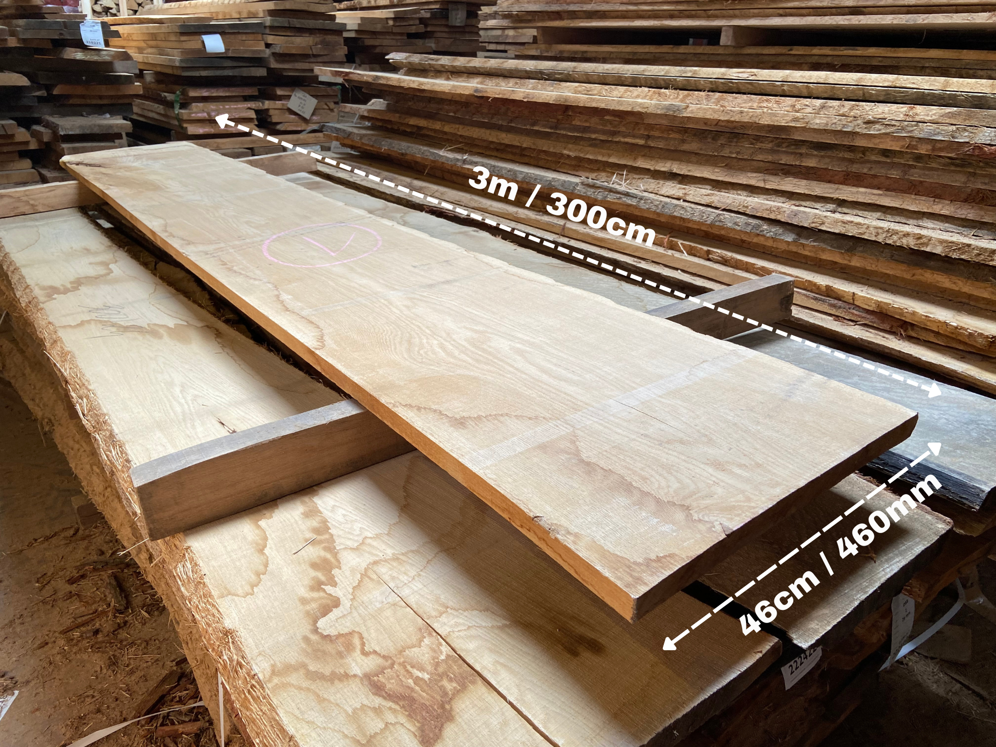Extra wide waney/live edge oak board – width 46m – length 3m